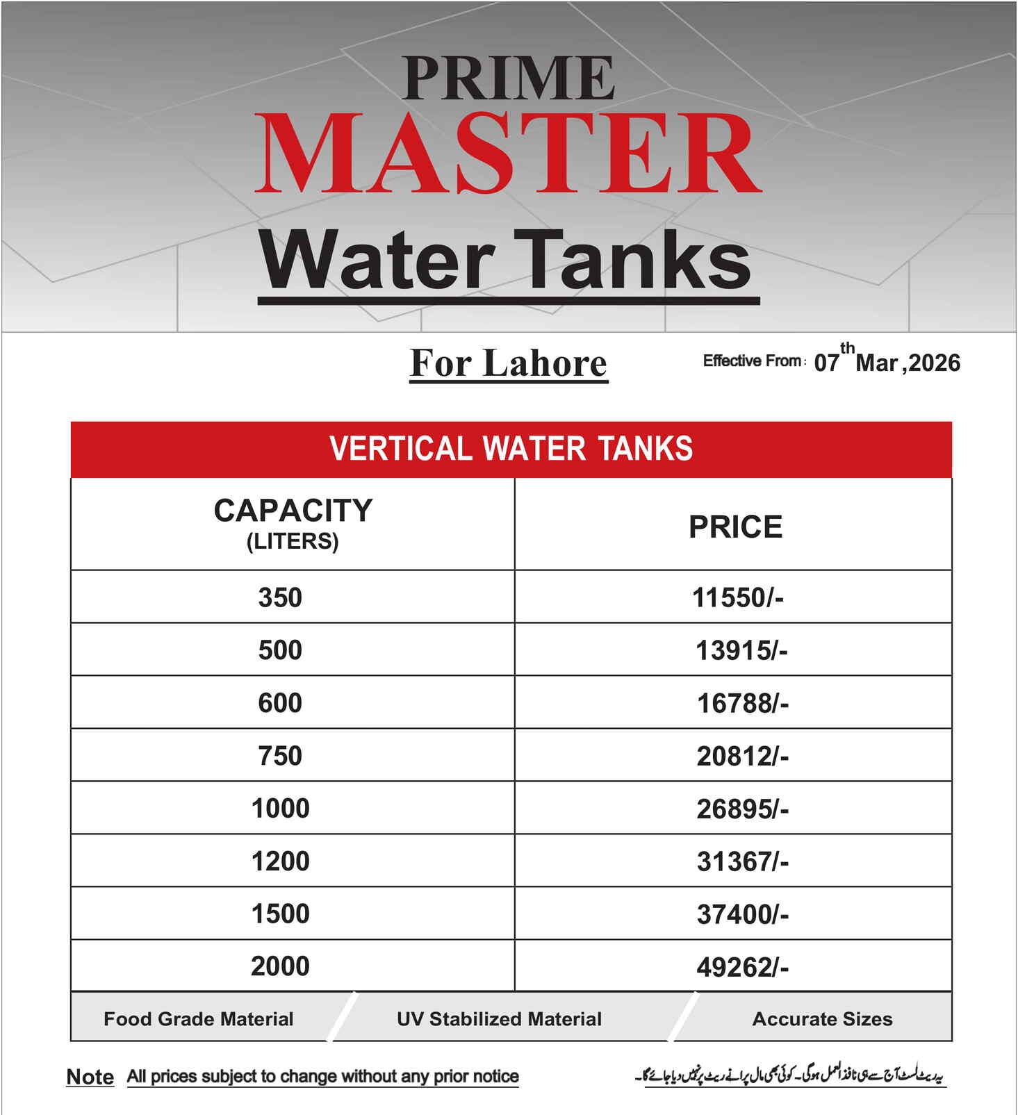 Dura Max Blow Mould Water Tank, Dura Max Roto Mould Water Tank, Prime Master Water Tank, Boss Water Tank, Toyo Water Tank, PPR Pipes & Fittings, PVC Pipes & Fittings